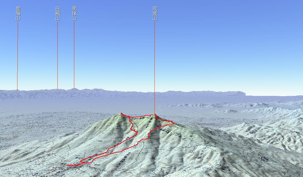 女体山です、ここには筑波山の石碑が立っていて山頂の岩の上からは360度の視界が開けます。 |