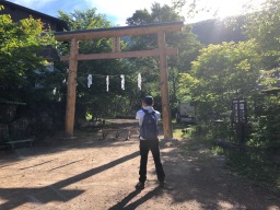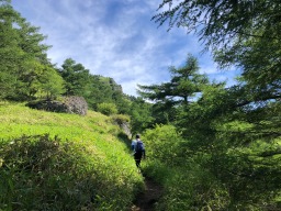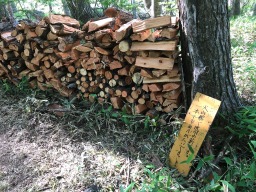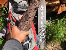 火山館で使用する薪の用です。リュックに入るぐらいのを見つけて1本だけですが協力させてもらいました。 |
