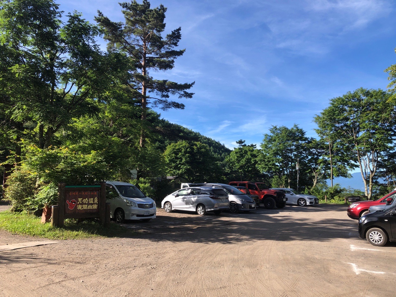 朝7時、浅間山荘の駐車場に車を停めます、料金は¥500。 |