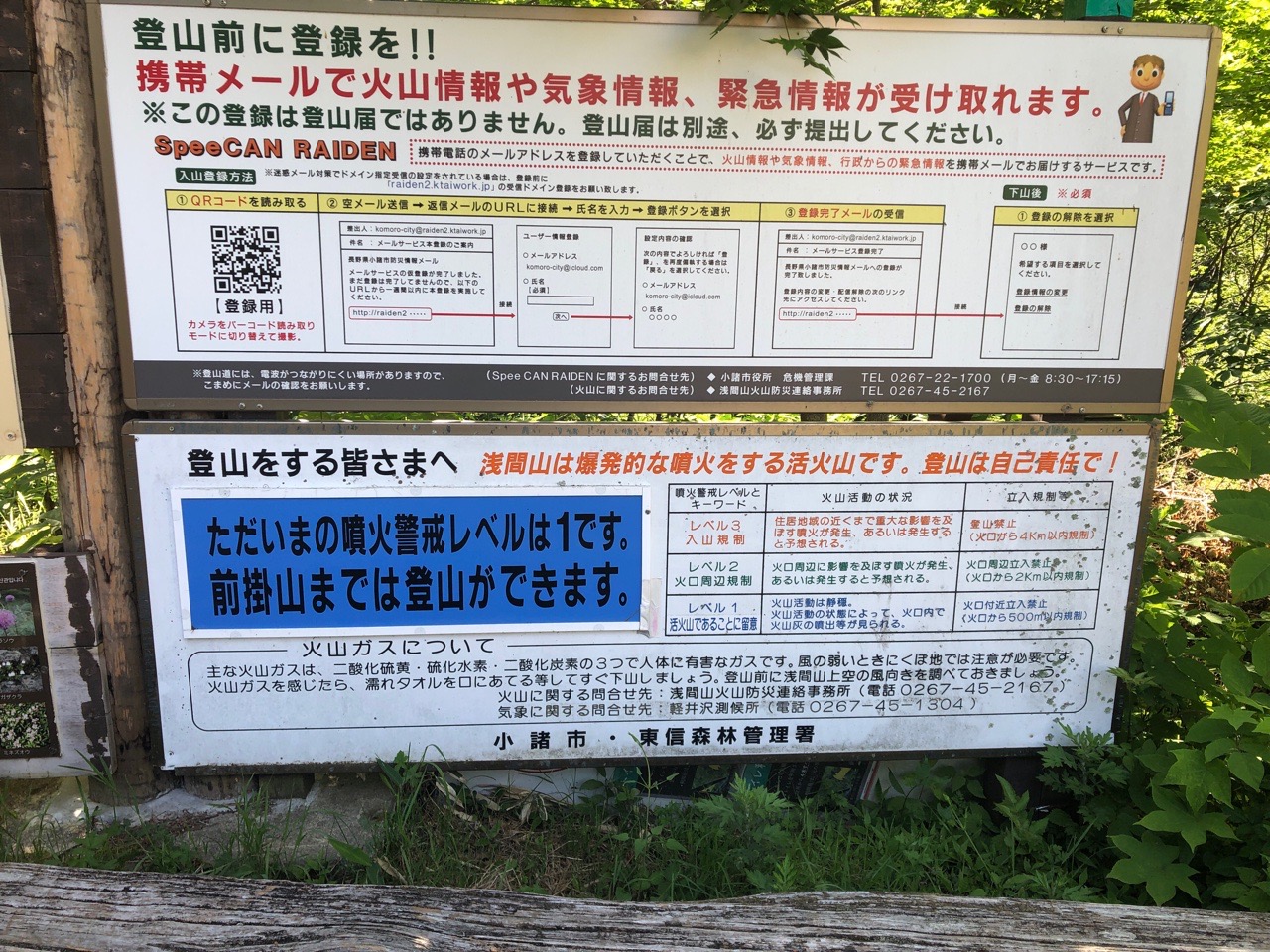 事前に調べては来たんですが、本日の噴火警戒レベルは1です。前掛山まで行くことができます。 |