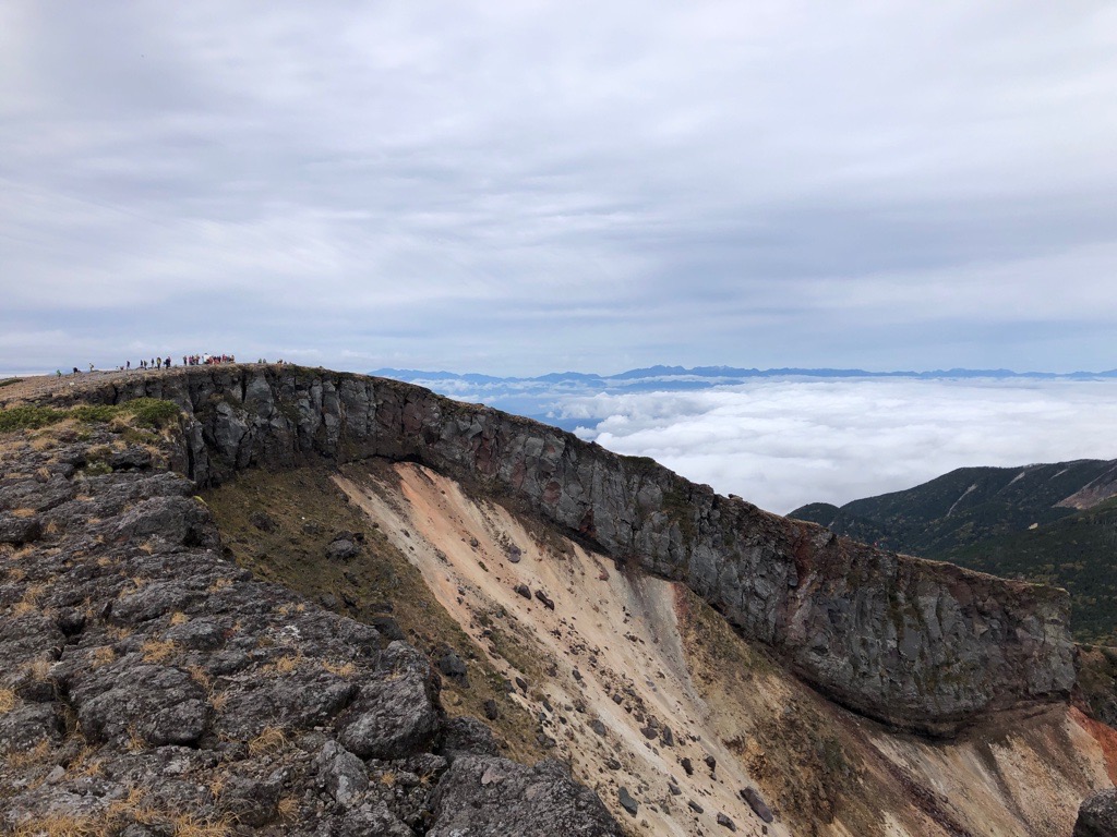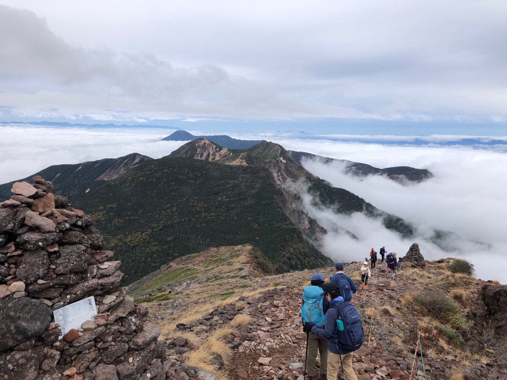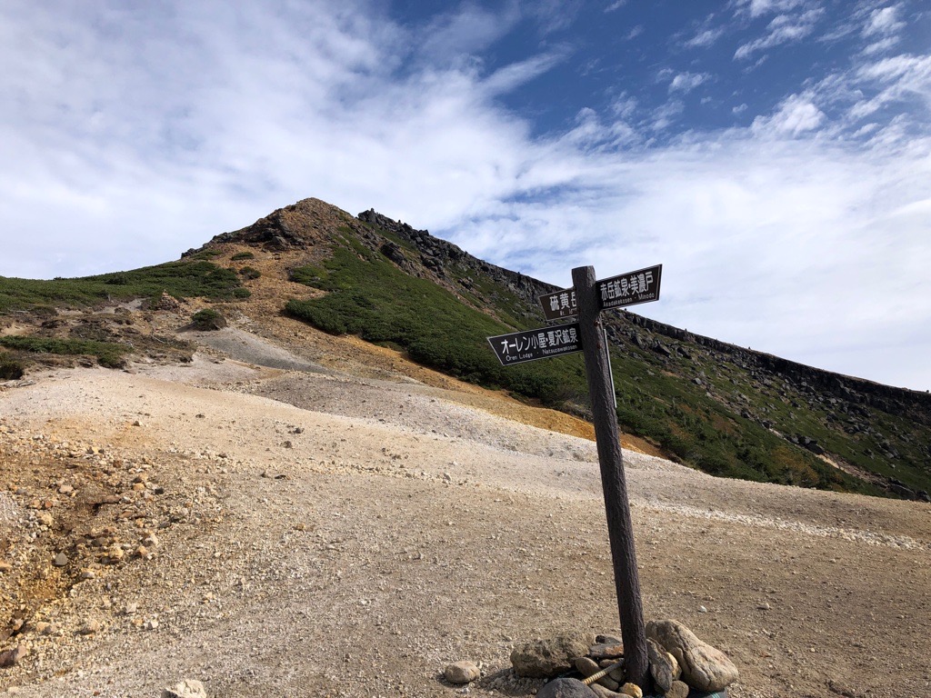 硫黄岳山頂です、とにかくだだっ広い場所です。 |