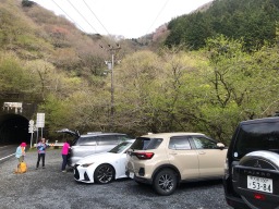 鞍掛峠東登山口駐車場です。朝8時、半分ぐらい埋まっていました。 |