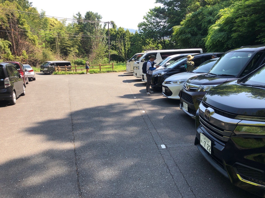 内山コース登山口駐車場、ピーカンの日曜日なのでだいぶにぎわっていました。 |