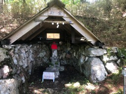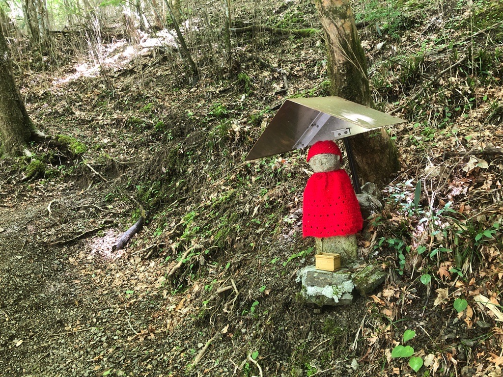 地蔵峠登山口です、お地蔵さんが新品の袈裟を羽織っていました。 |