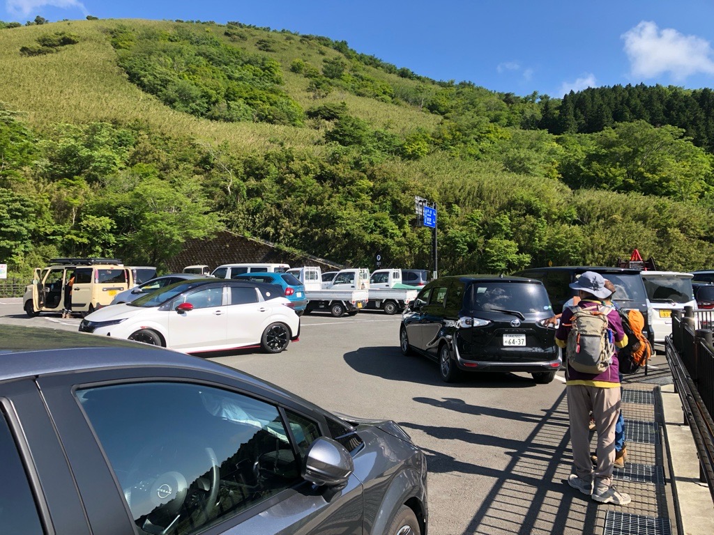 金時見晴パーキングに到着。すでに満車状態だったのですが何とか他の車の邪魔にならない枠外に駐車させてもらいました。 |