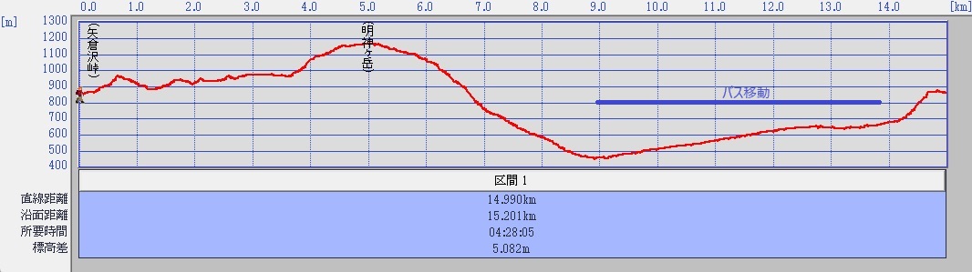 行程 :金時見晴パーキング07:50 〜 09:40明神ヶ岳山頂10:10 〜 宮城野バス停11:23 〜