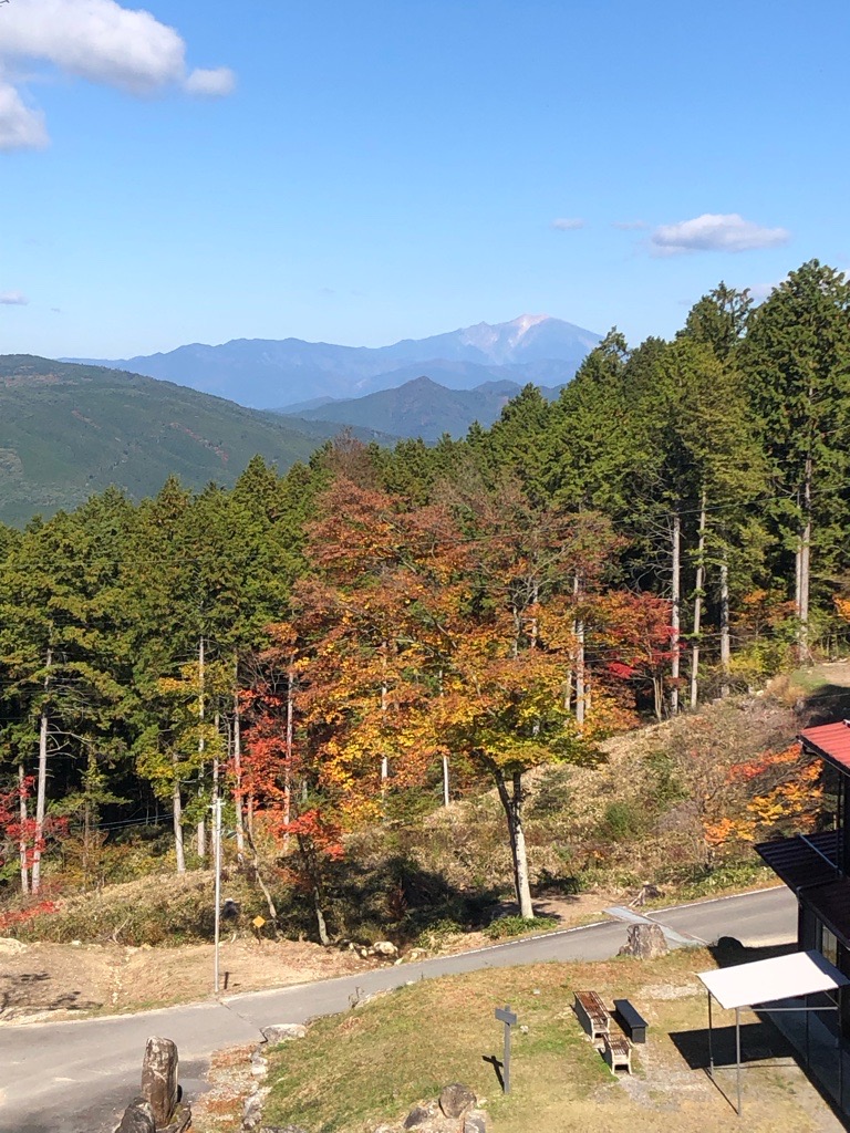 さらに下ったところにキャンプ場があり、御岳がよく見えました。 |