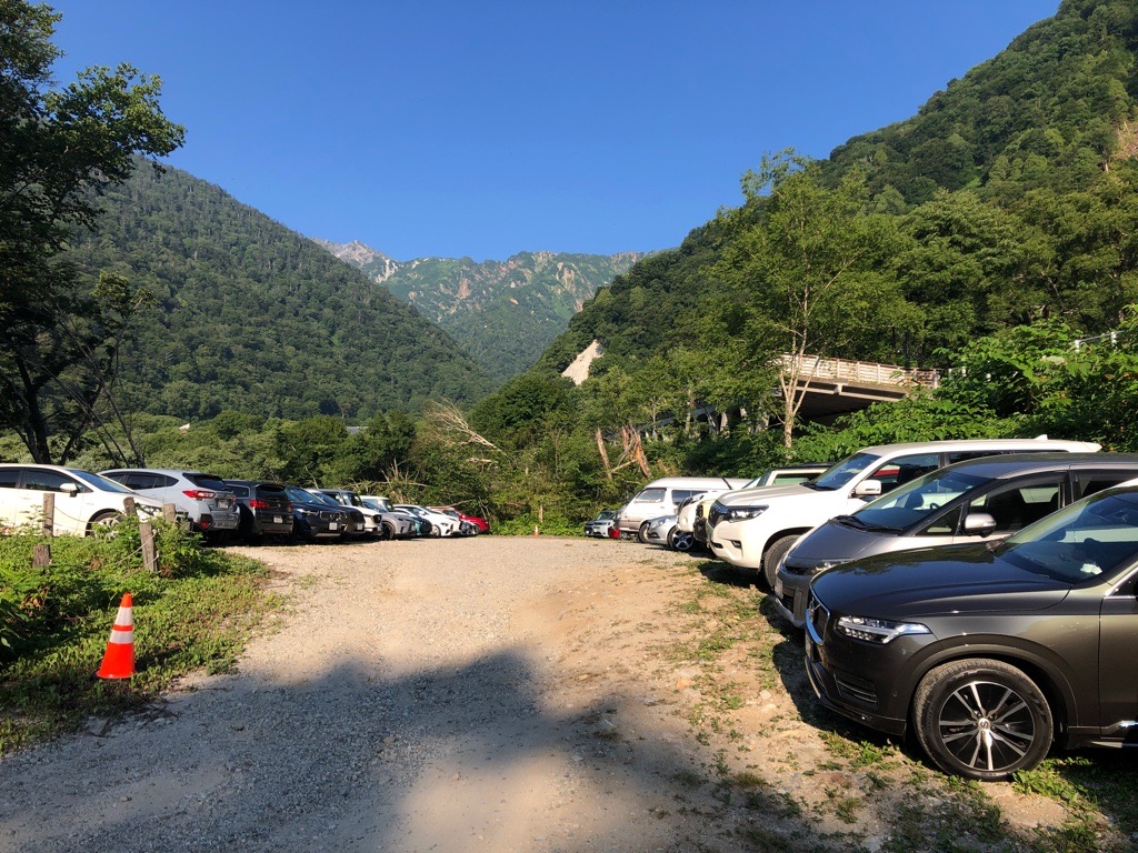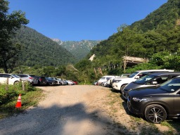 登山口近くの駐車場は満杯でした。ちょっと先の市営無料の第2駐車場になんとか停めることができました。 |