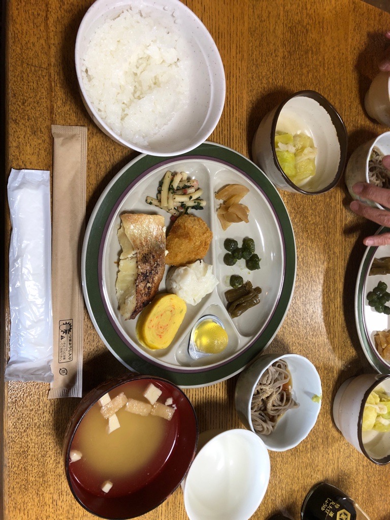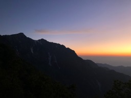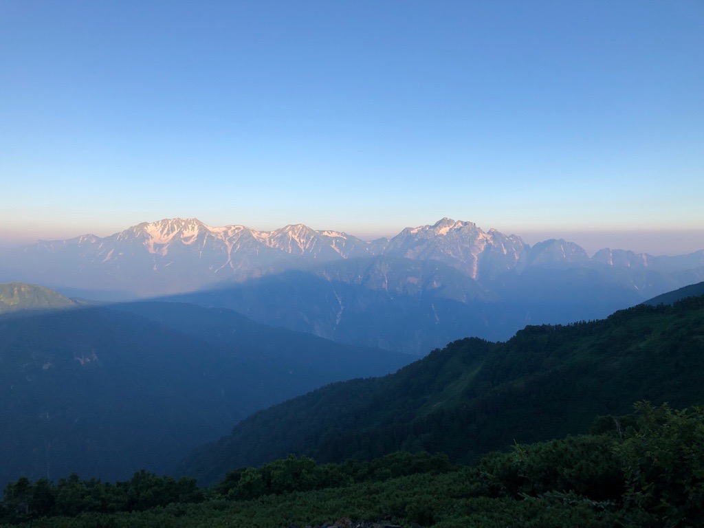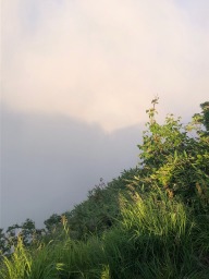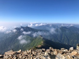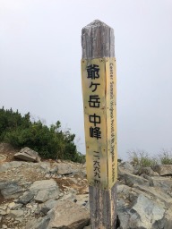 眺望を堪能し、宿でもらったおにぎりを食べ、下山します。北峰まで行く人も多いようですが、満足したので、というか疲れたのでここで下山します。 |