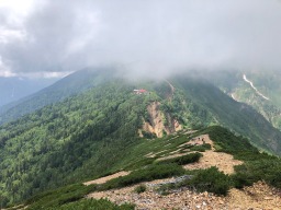 下ってくる人と話をしたら、種池山荘の下のあたりでクマを実際に見たとの事! とりあえず鈴を鳴らして進みました。 |