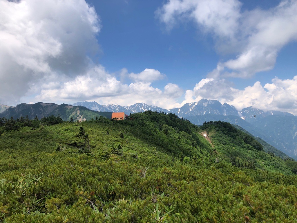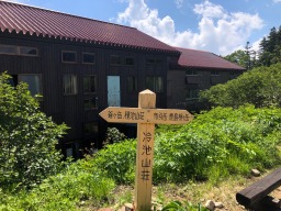 なんとか種池山荘に到着、ここはピザが有名みたいですね。おにぎりとかいろいろ持ってきたので心残りではありますがピザはパス。 |