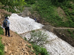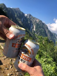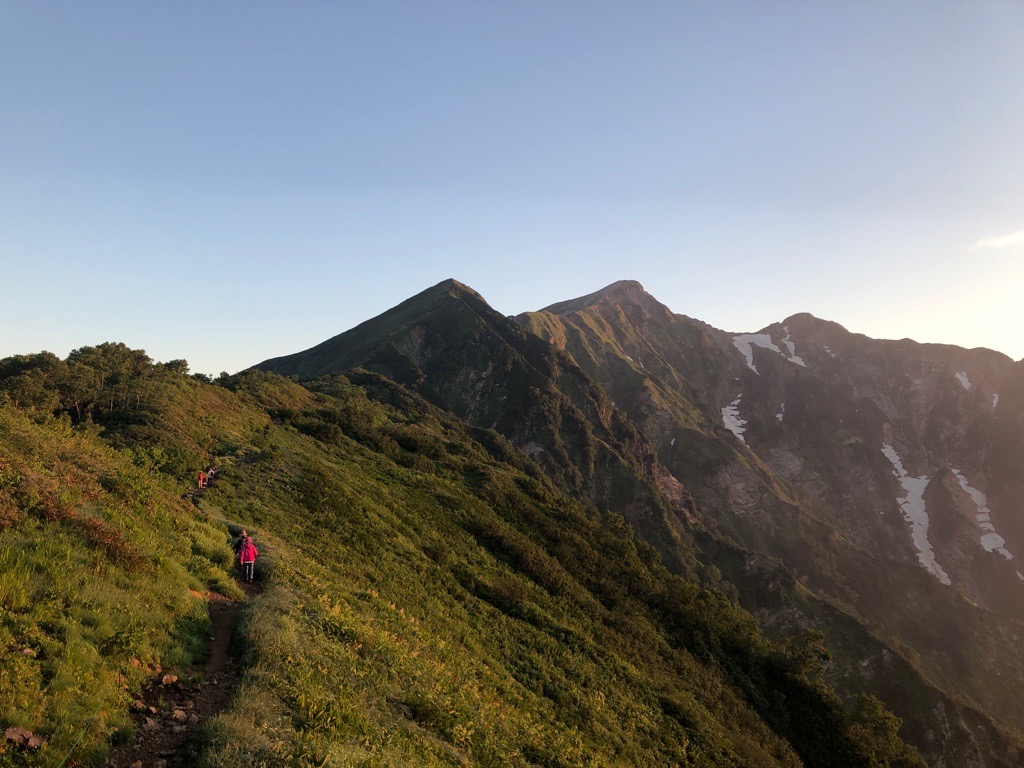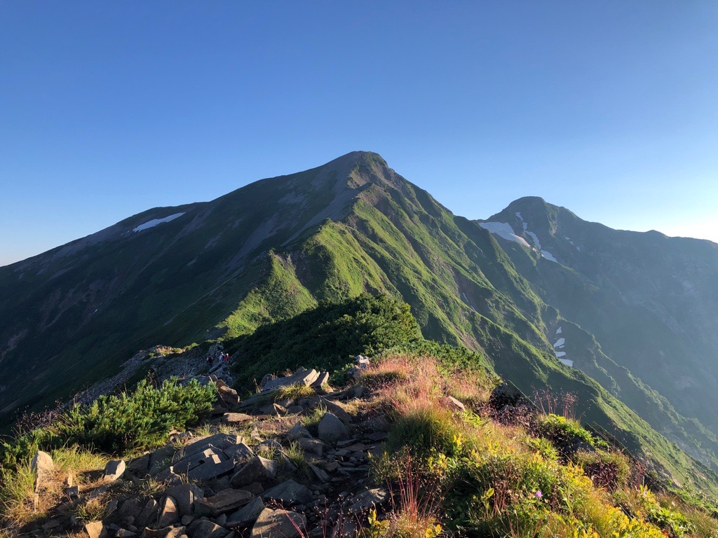 種池山荘から20分程下った場所に雪渓があります。登ってくるときにちょうど年配の方が20m程滑落していて人だかりができていました。山荘から救助の方が向かっているということでした。その後、救助されて無事下山したと知ったのですが、ちょっとした雪渓でも気を付けないと行けないなあと感じました。