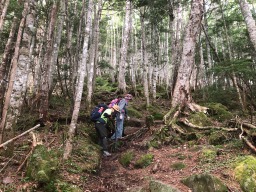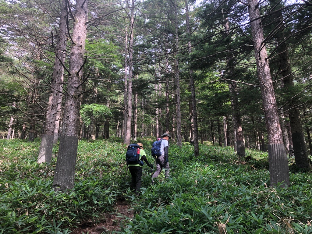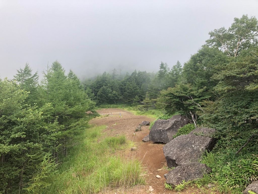 赤岳へ続く稜線の途中に牛首山があります。今回は涼を求めてそこに行ってきました。晴れていれば、富士山から八ヶ岳、奥秩父の山々がよく見えるはずでしたが、残念ながらガスガスで真っ白な雲しか見ることができませんでした。とはいえ、酷暑が続く下界から抜け出しての涼しい、というか寒いくらいの山の中は天国のようでした。