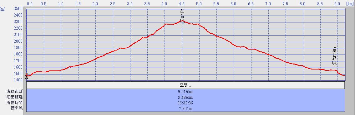 行程:美し森駐車場07:00 〜 賽の河原08:30 〜 牛首山09:40 〜 扇山10:00 〜 美し森駐車場13:40