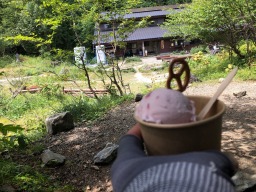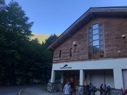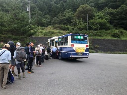 駐車場の前のバス停です。この日はバス2台でほぼ定員くらいでした。 |