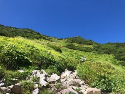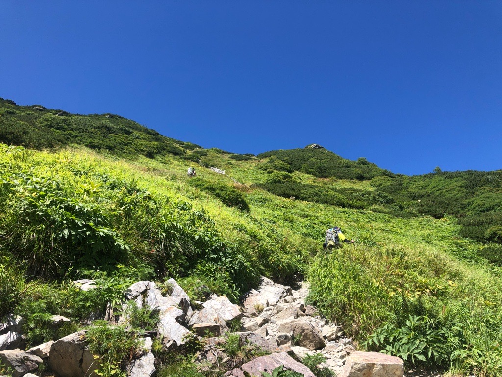 ここから草すべりという急坂が始まります。太陽光を遮る木々がないので暑すぎ・・ |