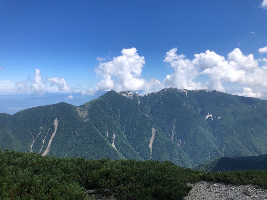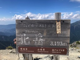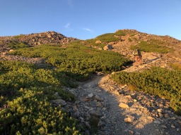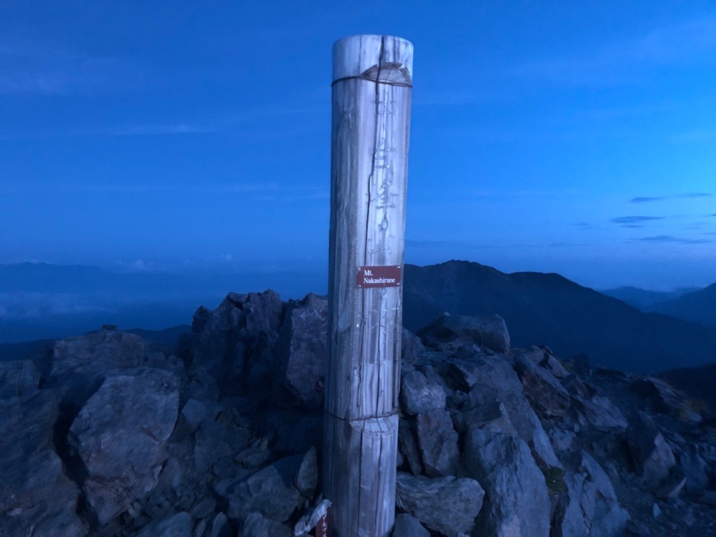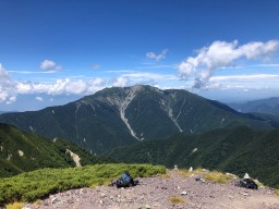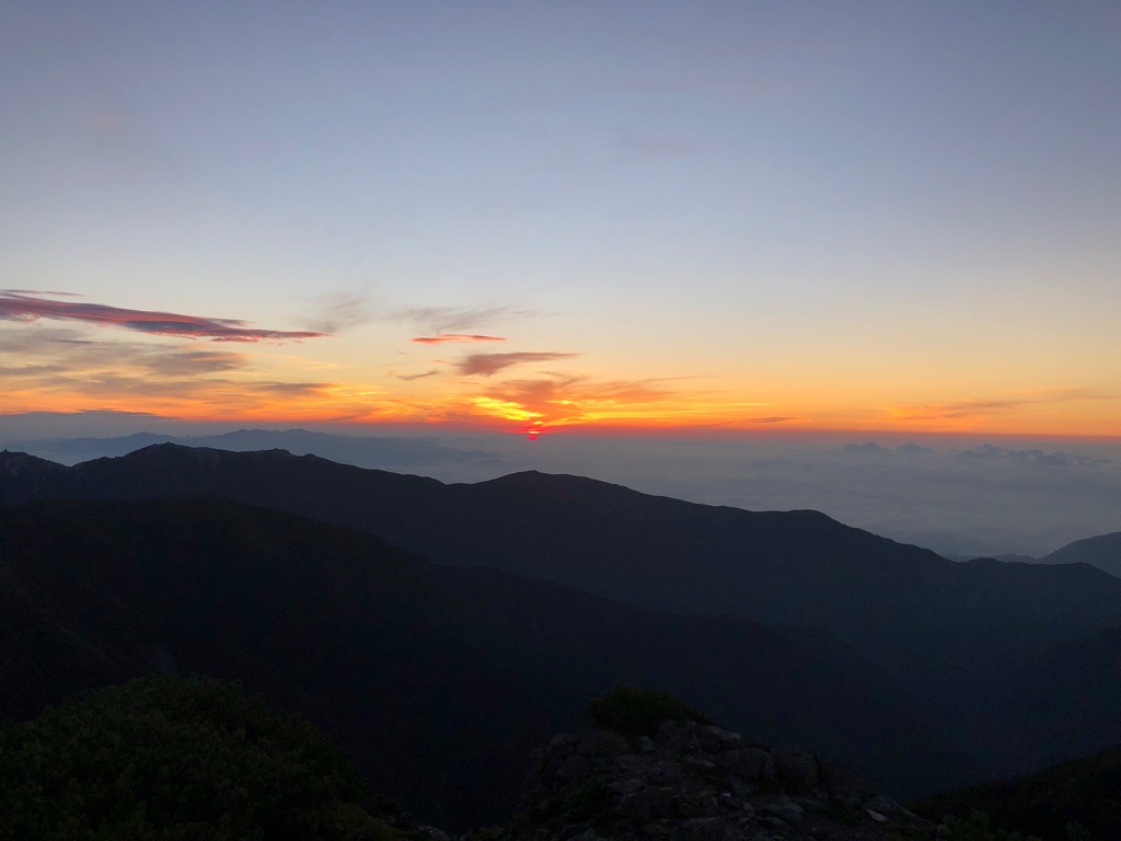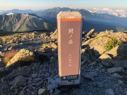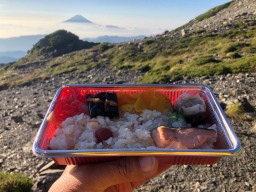 間ノ岳からの帰りに、朝飯です。山荘でもらった酢飯弁当旨かった。 |