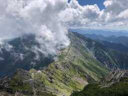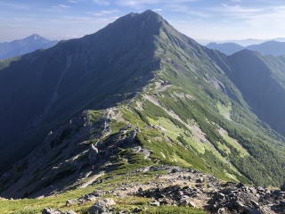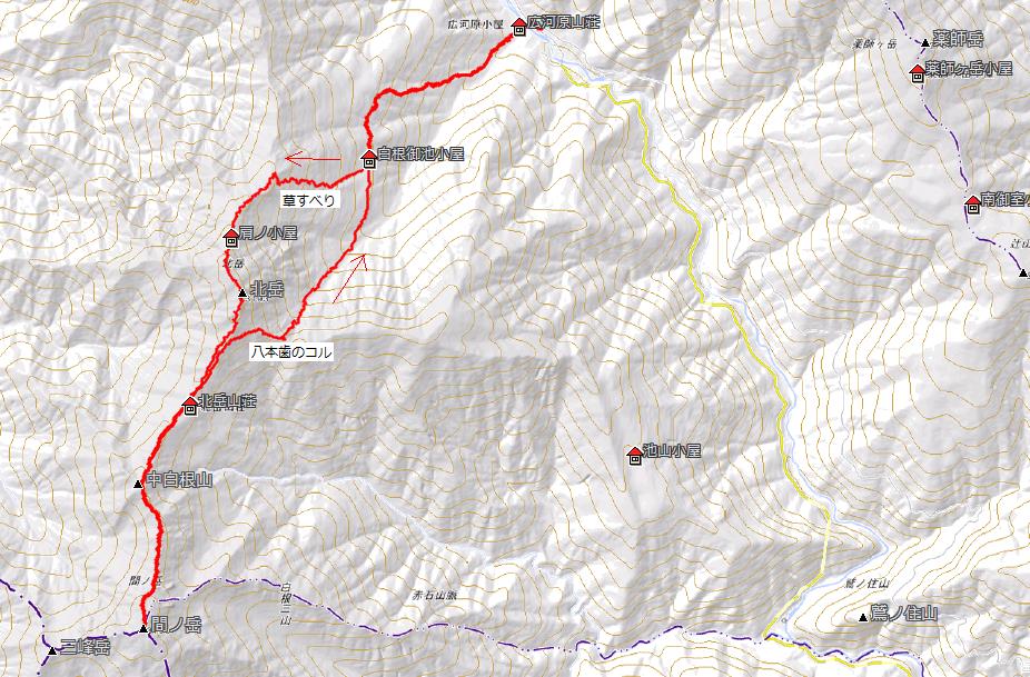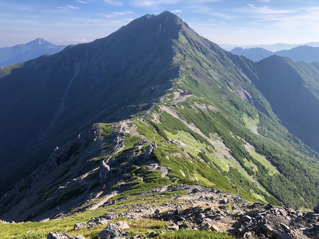 北岳山荘に戻り、八本歯のコル経由で下山します |