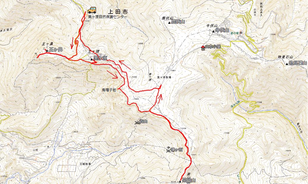 行程: 自然保護センター07:40 〜 王ヶ鼻08:20 〜 王ヶ頭09:00 〜 茶臼山10:40 〜 自然保護センター13:20