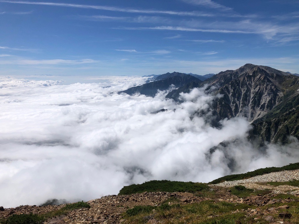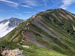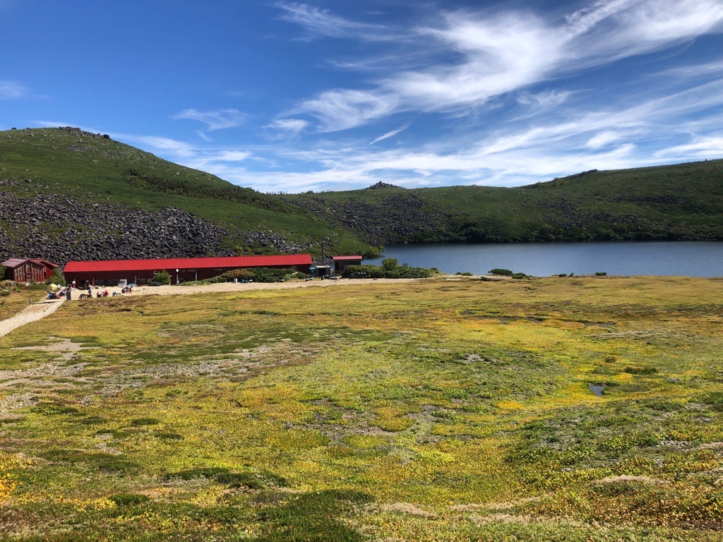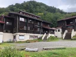 白馬大池山荘に戻りました。ここが今日の宿泊地です。最近の物価高で宿代も値上がりましたね、夕食+朝弁当込みで¥15,000でした。 |