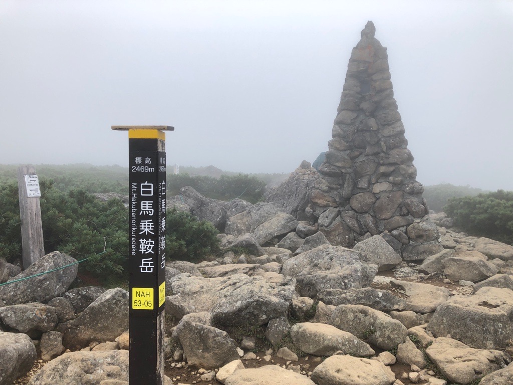 白馬大池山荘に12時頃についてしまったので、ちょっと栂池方面に足を延ばして白馬乗鞍岳にってみました。御覧の通り真っ白け。 |