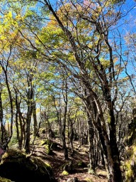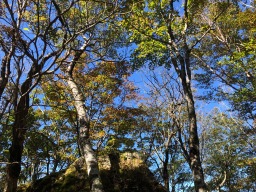 頂上はちょっと先ですが、景色が良い場所に休憩所があります。ここでランチタイムおしました。 |