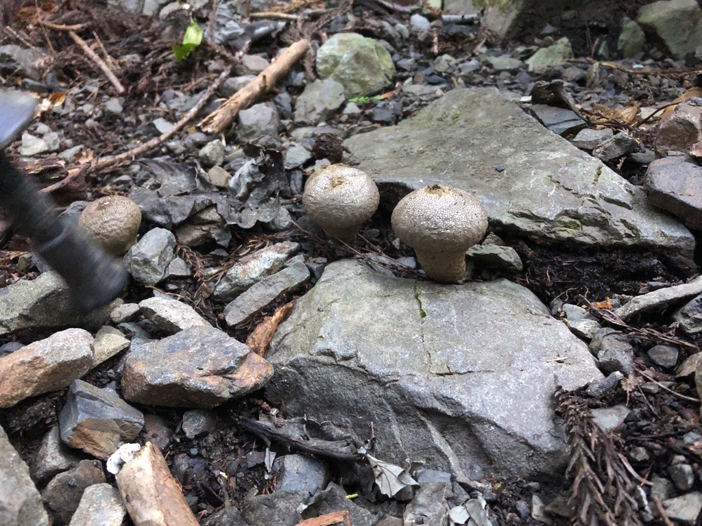 つついて遊んでみました、上の穴から煙のような胞子が出ます。面白い! |