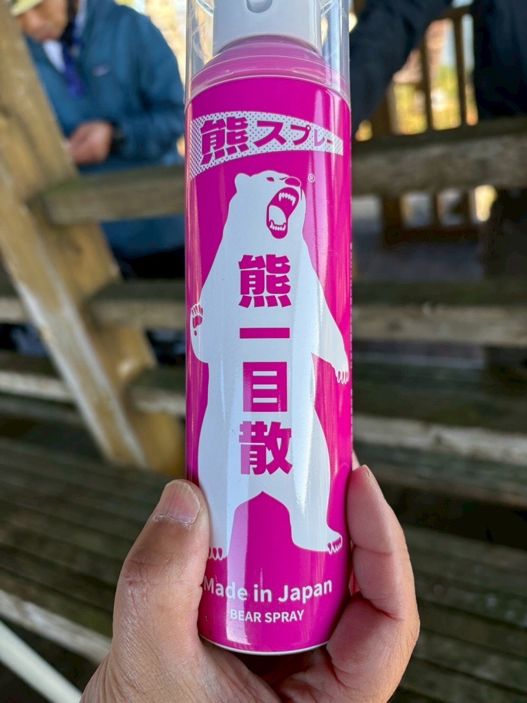 山頂で仕事中の佐久間森林組合の方に会いちょっと話をしました。今日ではないが先日この辺りで熊を見かけたとの事、そのため熊スプレーを携帯しているようです。これ1本で9,900円だそうです。組合で支給してくれてるようですが個人ではなかなか手が出ない金額です。 |