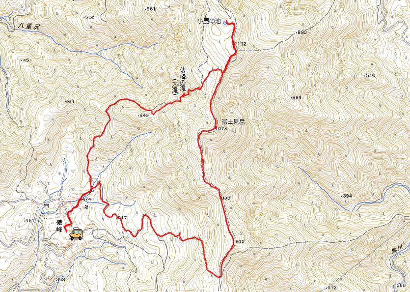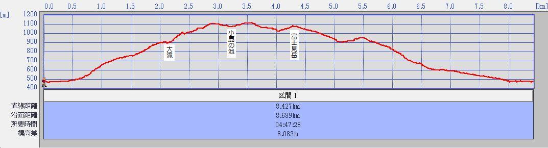 行程: 駐車場07:50 〜 大滝09:00 〜 仔鹿の池09:50 〜 富士見岳10:40 〜 駐車場12:30