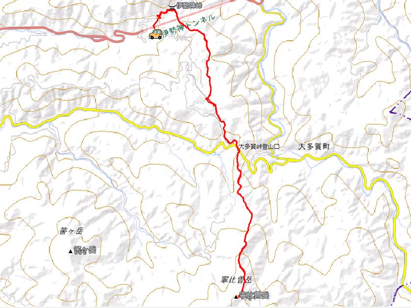 行程: 伊勢神峠登山口08:15 〜 大多賀峠登山口09:30 〜 10:20寧比曽岳11:20 〜 伊勢神峠登山口13:00