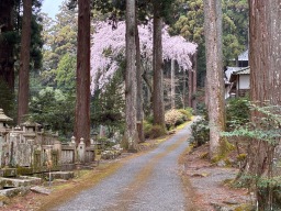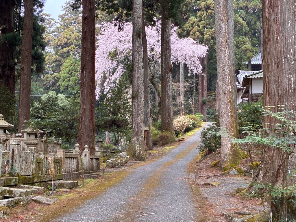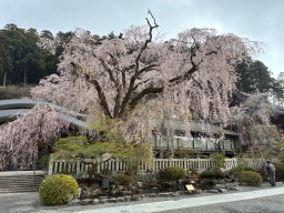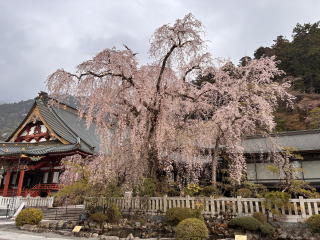 今回は久遠寺の枝垂桜を見ることが目的です。ピークはおそらく2〜3日前だったのでしょう、散り始めた桜の花弁が地面にたまってきていました。それでも見事な枝垂桜を見ることができました。