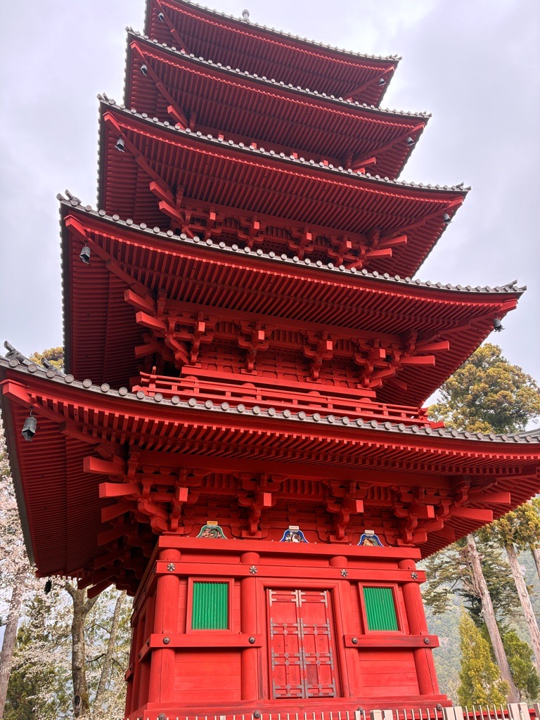 石段登りきると五重塔が迎えてくれます。 |