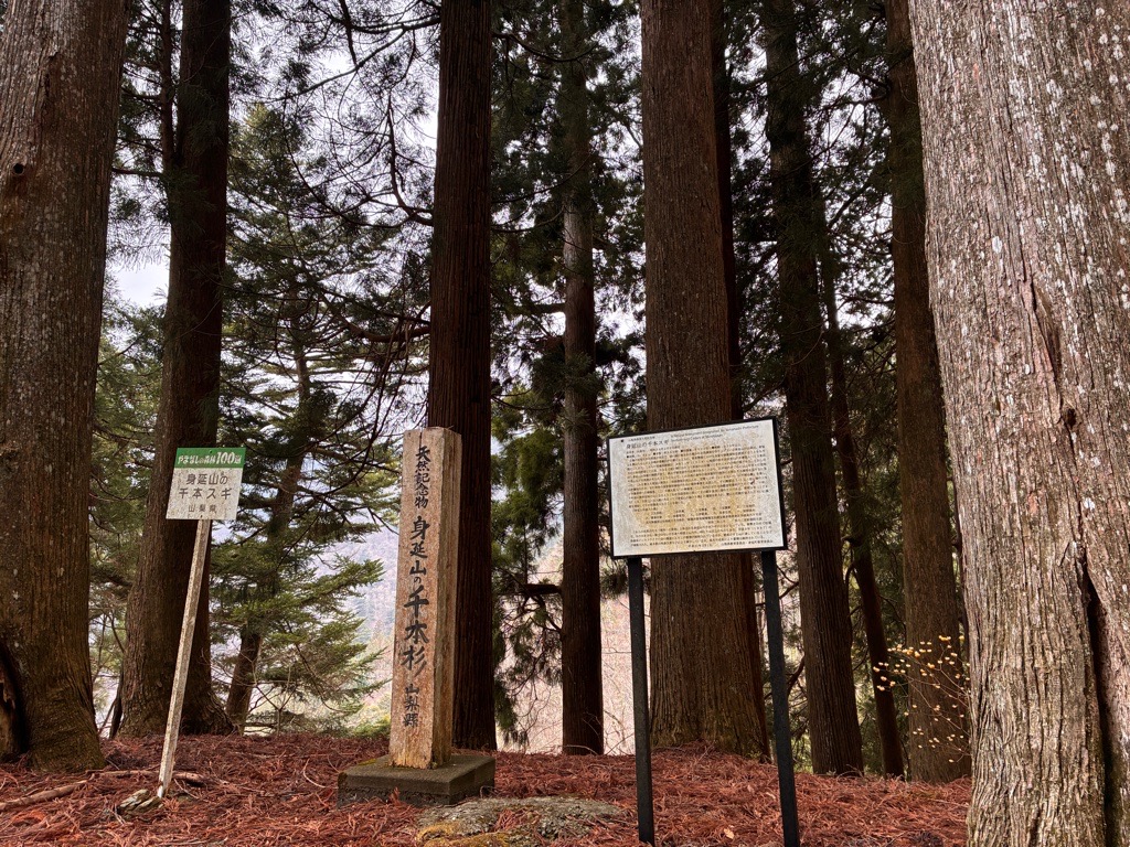 途中にある「千本杉」 でかい杉が立ち並んでいました。 |
